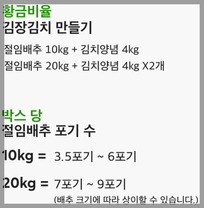 - 시간 절약: 김장 시즌에는 여러 가지 준비로 바쁘기 때문에, 미리 예약해 두면 시간과 노력을 절약할 수 있습니다. 예약한 배추는 정해진 날짜에 맞춰 배송받을 수 있어 편리합니다.
