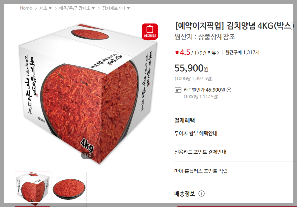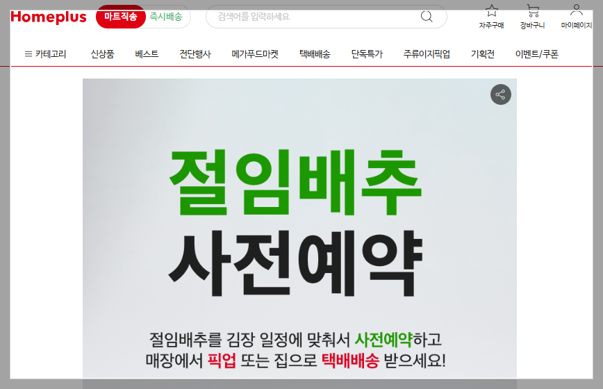 홈플러스 절임배추 사전 예약 주문과 희망 도착일