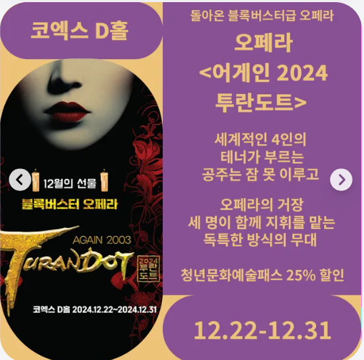 - 지급된 포인트 소진 시, 본인부담금을 추가로 사용하여 애매 가능합니다. (예매처별 결제 방법 참고)