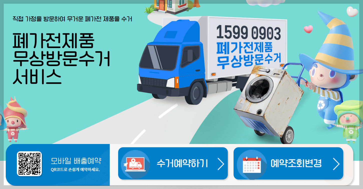 - 서비스 신청 : 폐가전 배출 예약 온라인, 콜센터 신청(1599-0903)