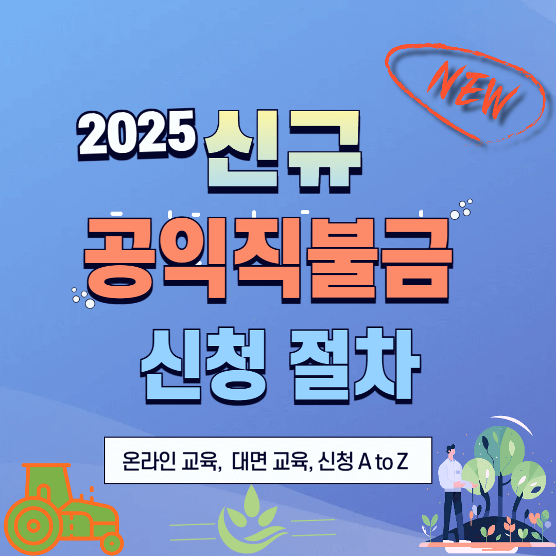 공익직불금은 농업·농촌의 공익적 기능을 증진하기 위해 정부가 지급하는 지원금입니다. 2025년 공익직불금 신청이 시작되었으며, 특히 신규 신청자와 기존 신청자의 신청 절차가 다르므로 주의가 필요합니다. 공익직불금 신규 신청자는 직접 방문 신청해야 합니다.
