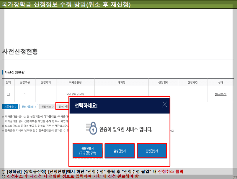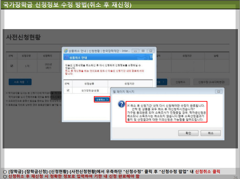 국가장학금 신청정보 수정(취소 후 재신청)
