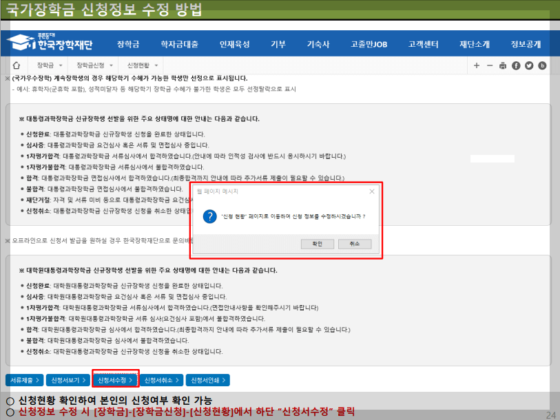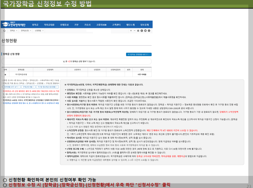 국가 장학금 신청 정보 수정 방법