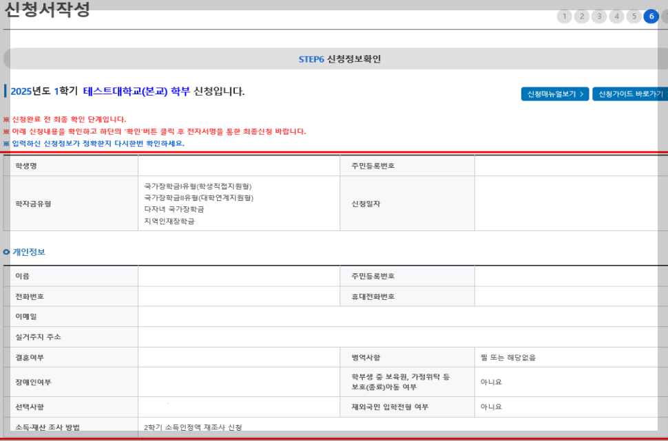 ※ 소속대학 오신청, 학적 오신청 발생 시 심사에 오류가 발생할 수 있으므로 정확히 입력
