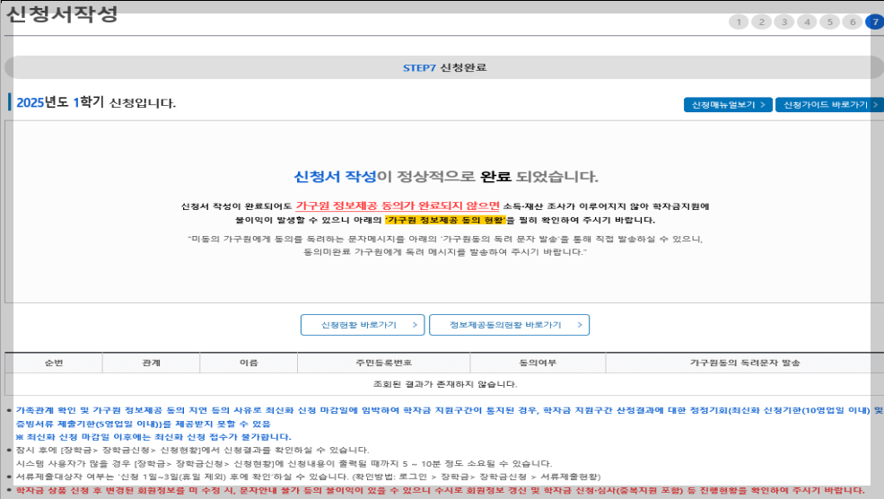 - 다자녀 국가장학금 해당자의 경우, 정확한 형제/자매 수 및 서열을 입력 요청